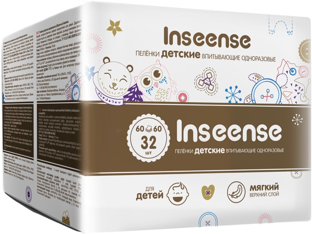 Пеленки INSEENSE впитывающие одноразовые 60х60 32 шт