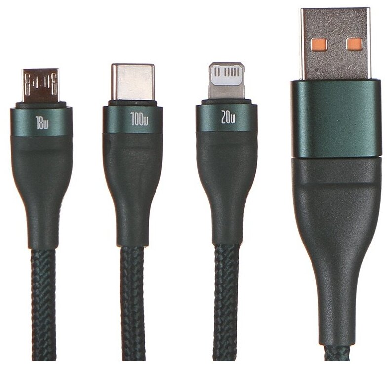 СохранитьКабель BASEUS Flash Series Two-for-three, U+C to MicroUSB 18W + Type-C 100W + Lightning 20W, 1,2м, Зеленый, CA2T3-06 интересное: