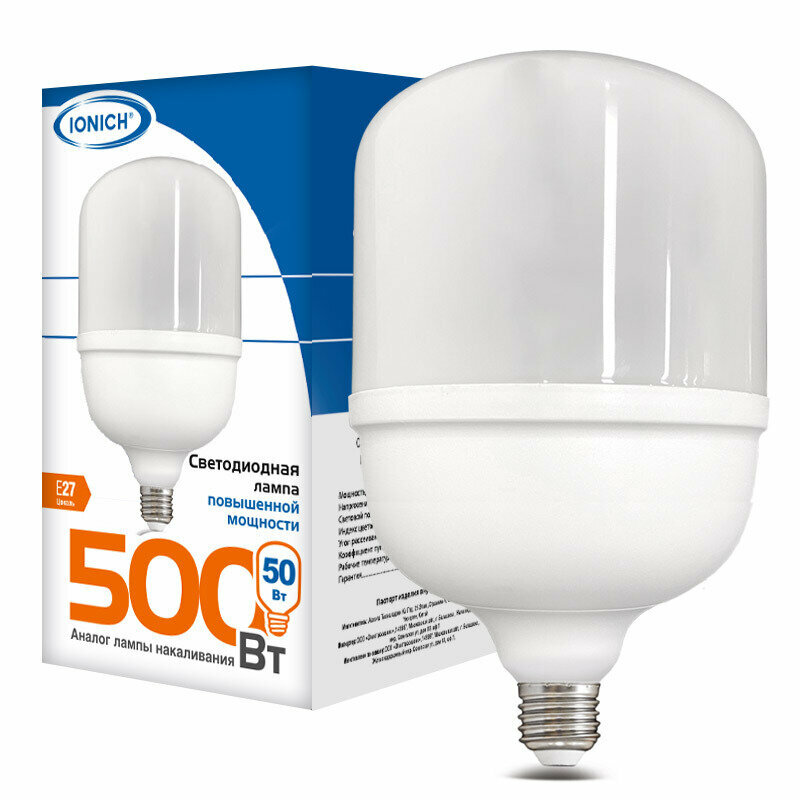 СохранитьСветодиодная лампа высокой мощности IONICH ILED-SMD2835-Т125-50-4500-220-6,5-E27 1344 1508 интересное: