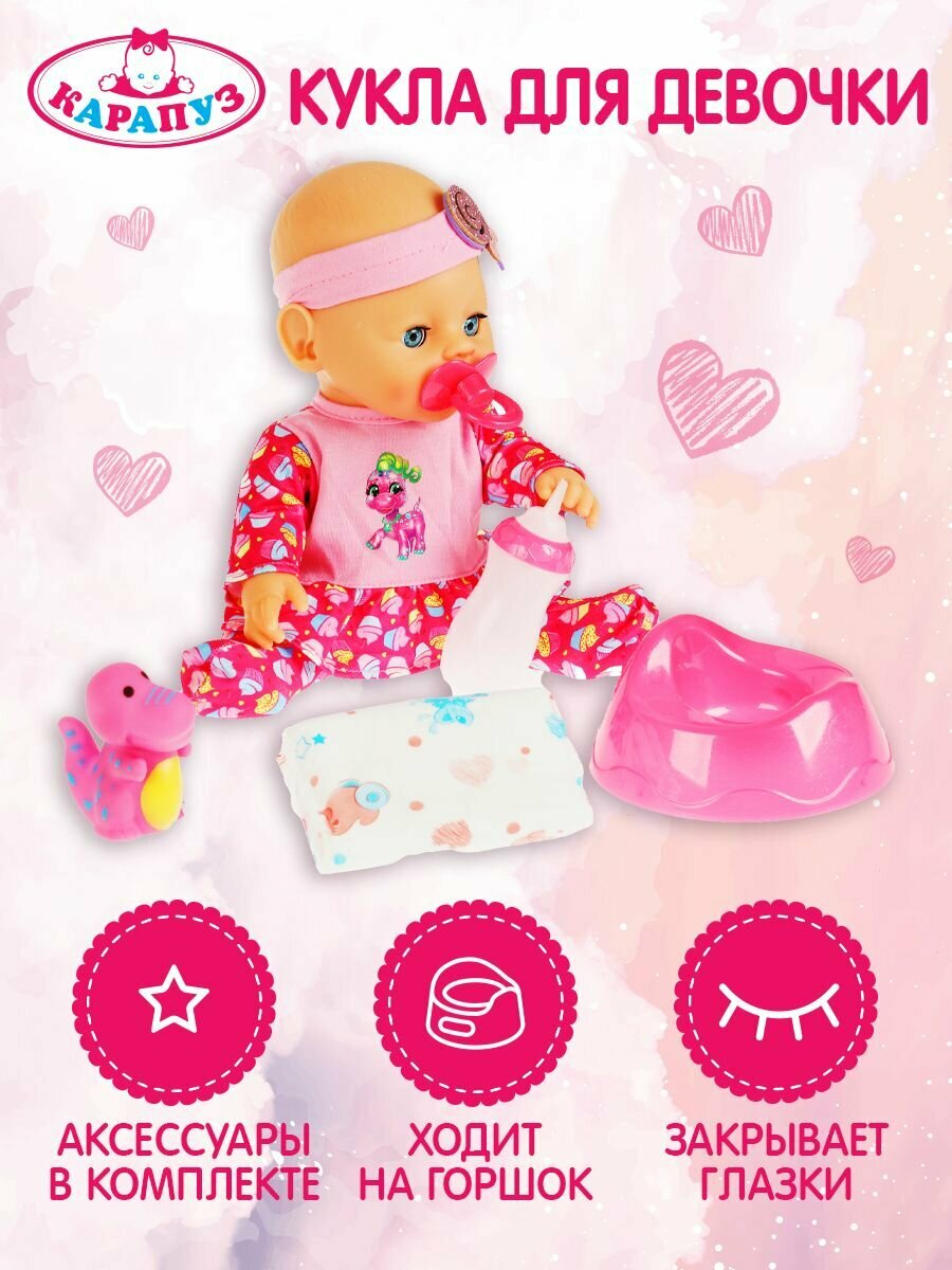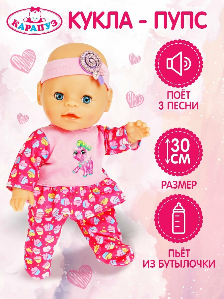 Пупс Карапуз, озвученный, Маршак Алиса 30см, пьет, писает, закрывает глаза, стихи, игрушка, 4 аксессуара