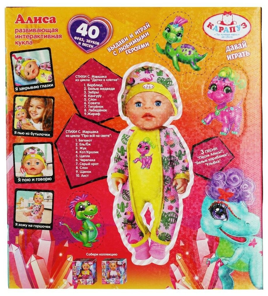 Карапуз Пупс интерактивный Алиса 30 см Карапуз Y30BB-DP-DINO-22-RU