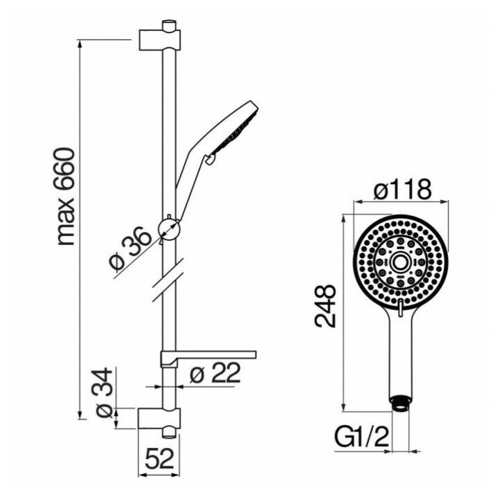 | Комплектация | Душевой гарнитур / душевой шланг / душевая лейка / штанга для душа / держатель для душа / полка / инструкция |