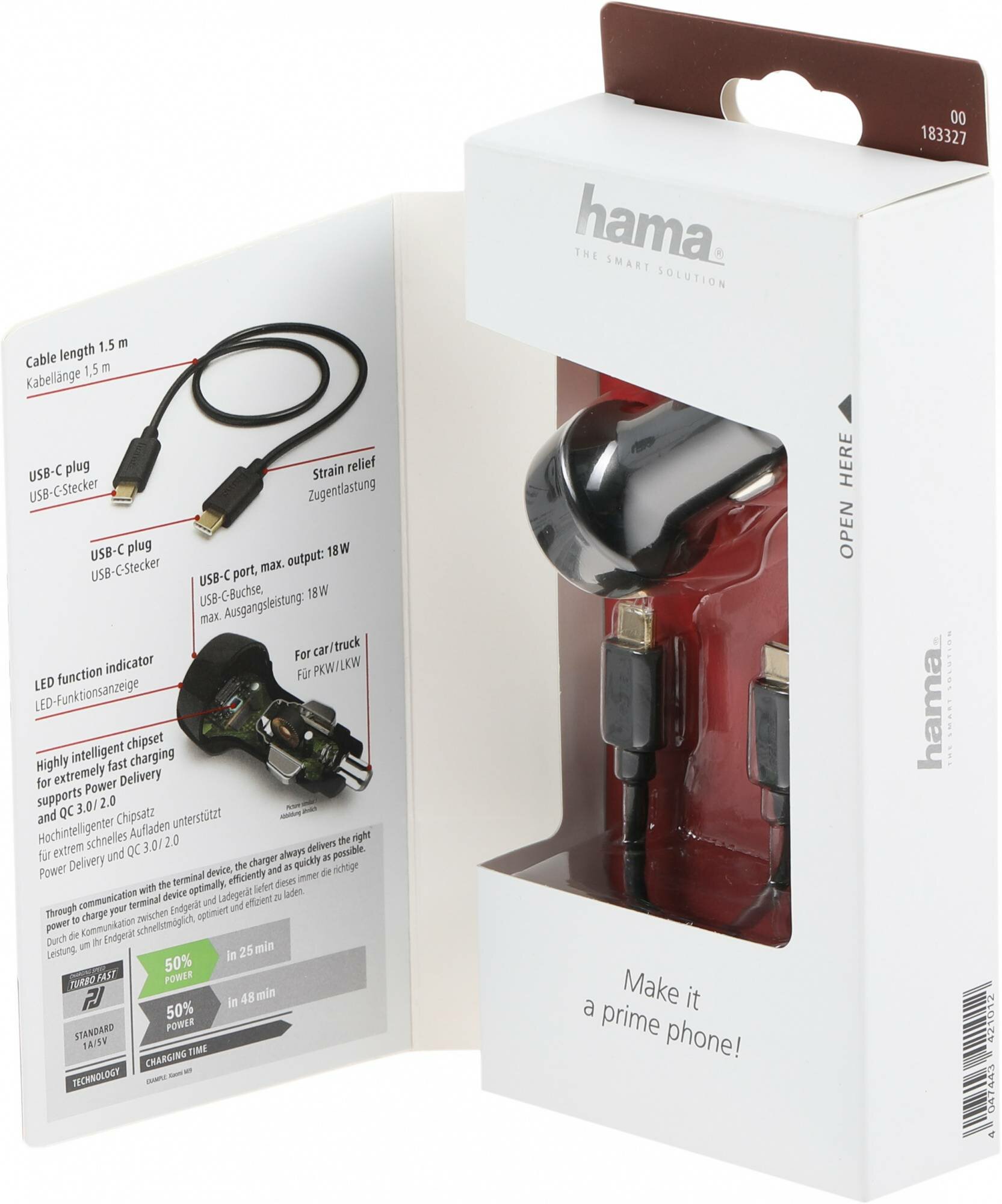 Автомобильное зарядное устройство HAMA H-183327, USB type-C, USB type-C, 3A, черный [00183327]