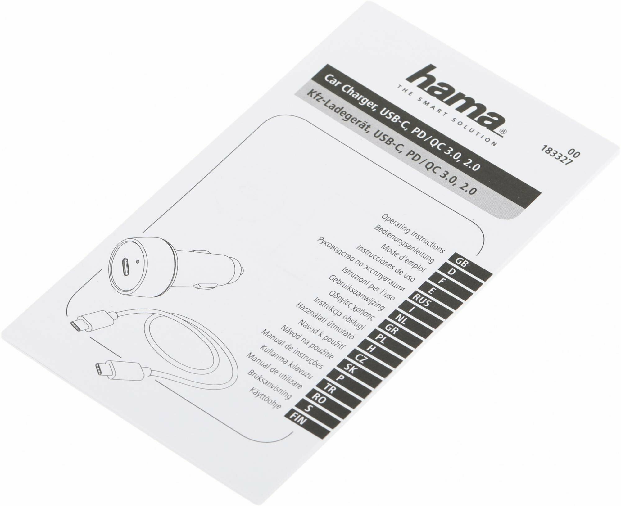 Автомобильное зар./устр. Hama H-183327 3A (PD+QC) универсальное кабель USB Type C (00183327)