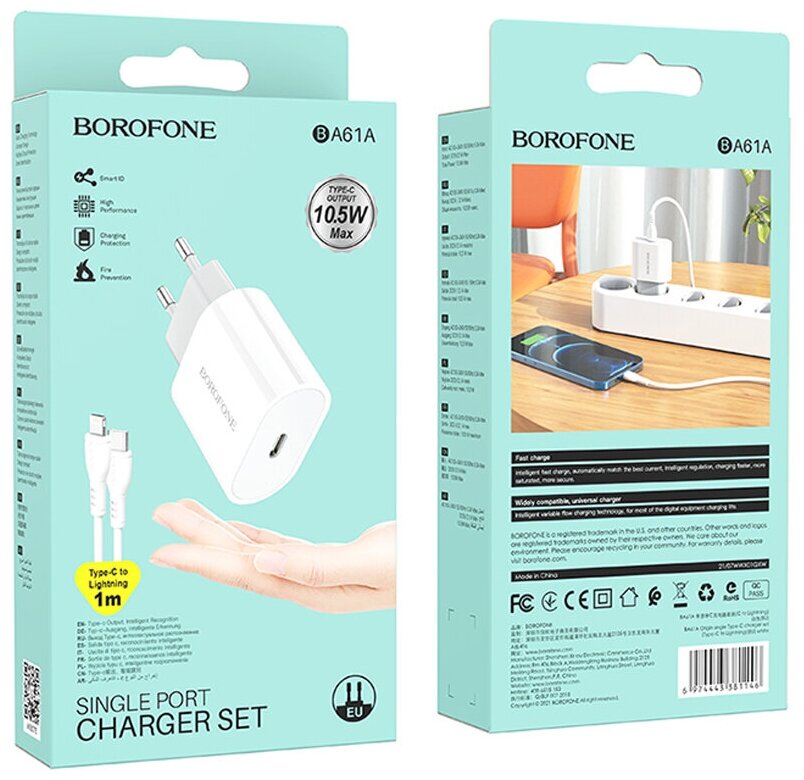 Сетевое зарядное устройство Borofone Ba61a, Type-C, 2.1 А, кабель Type-C - Lightning, белый Borofone интересное: