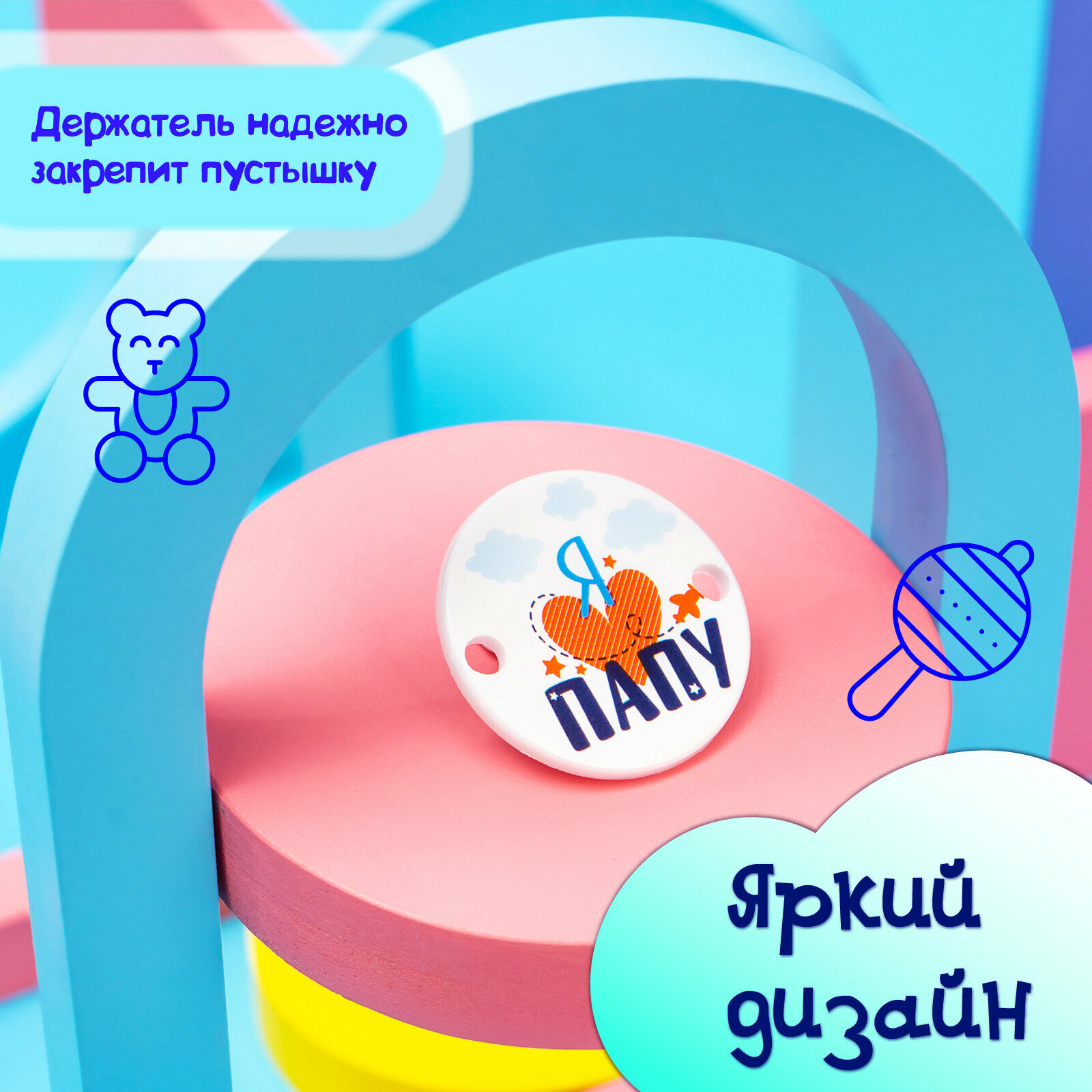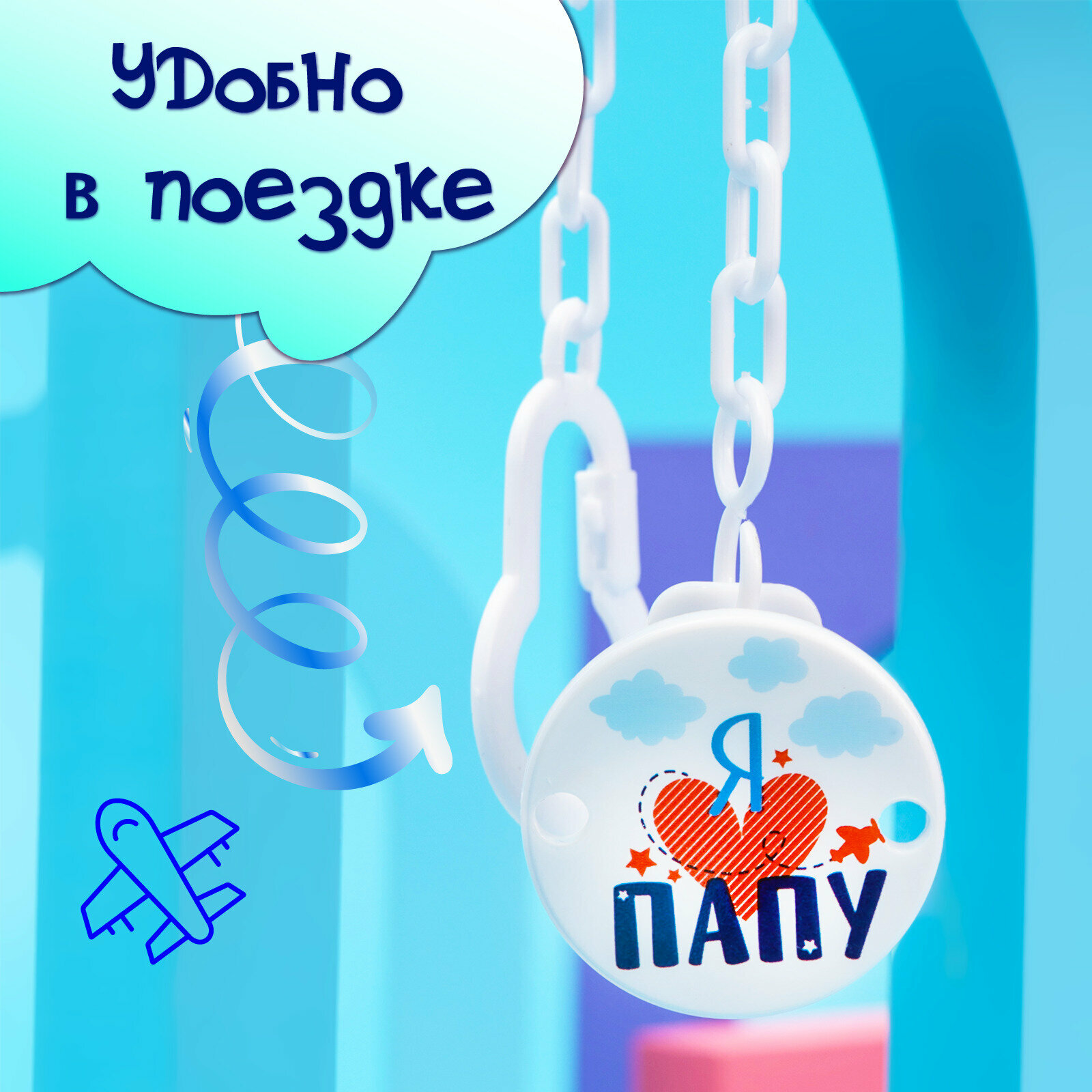 Держатель для соски - пустышки «Я люблю папу», на цепочке цвет белый