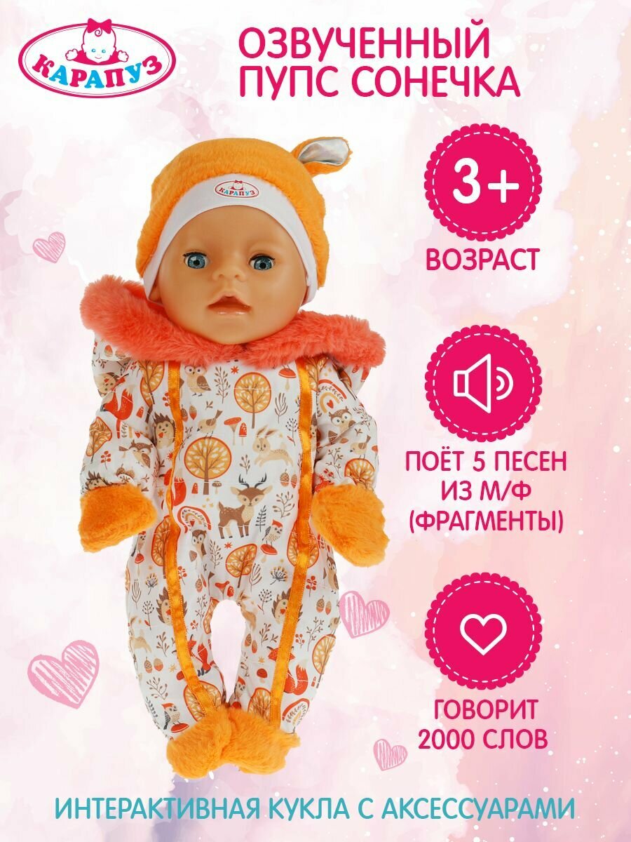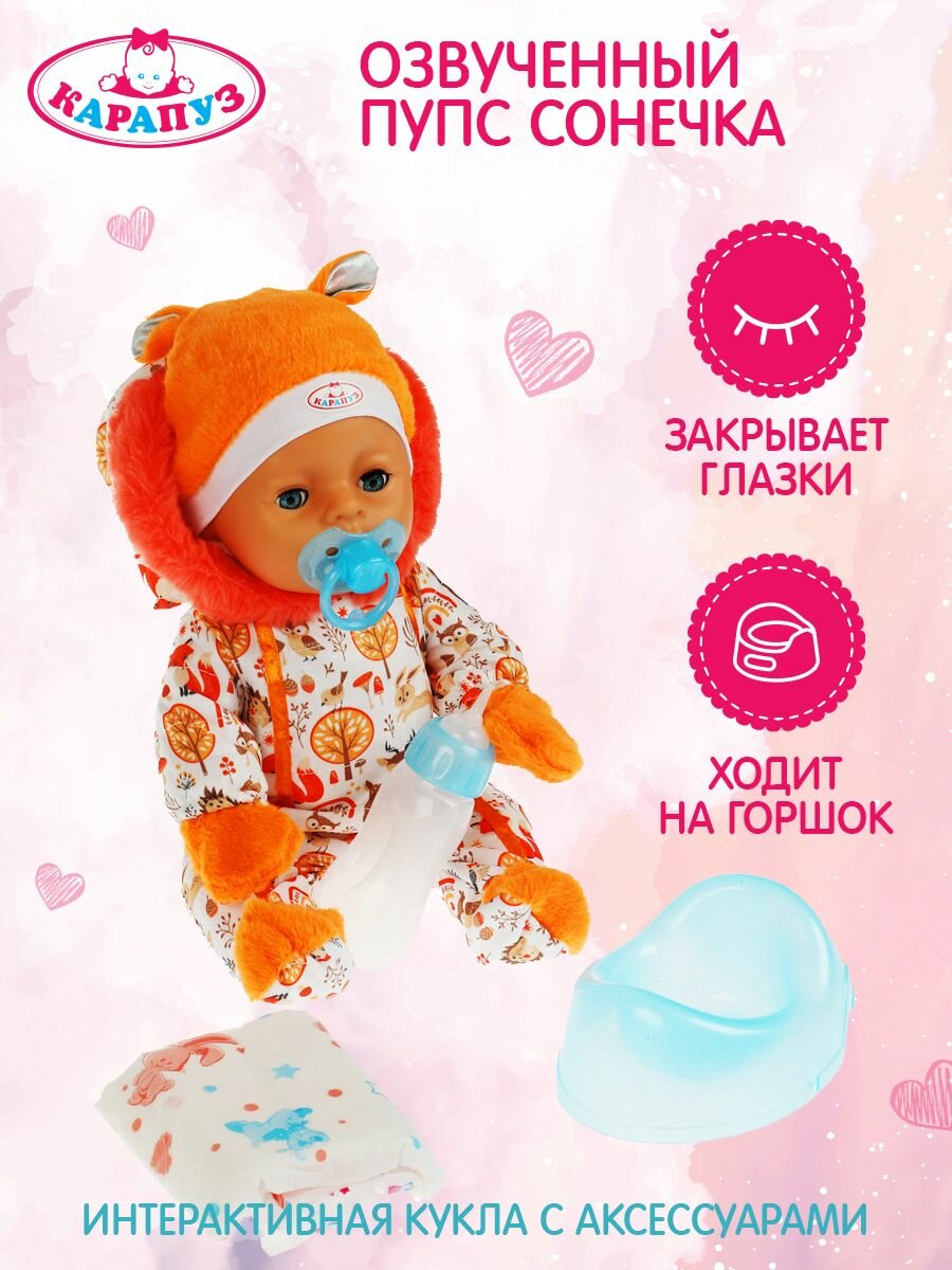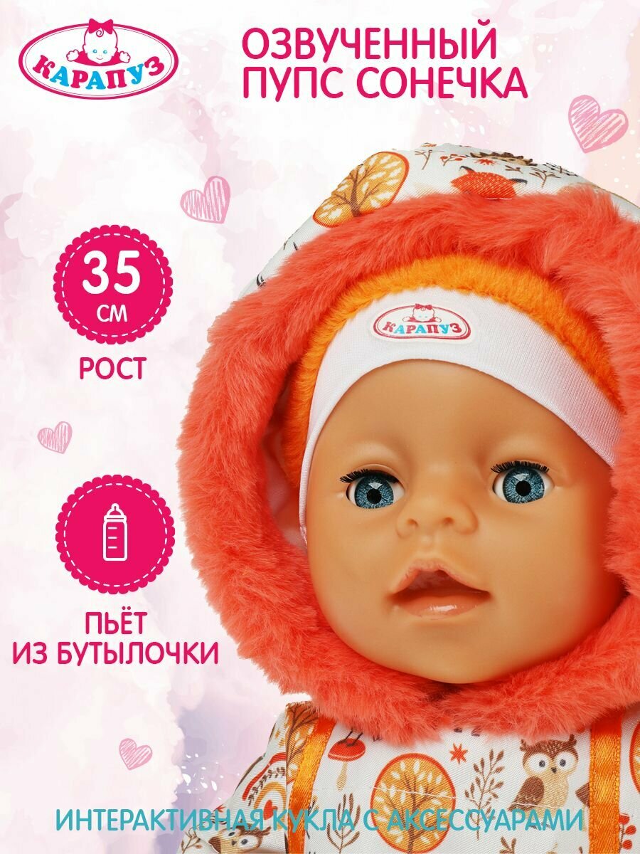 Пупс Карапуз, озвученный Шаинский музыка Сонечка 35см, пьет, писает, закрывает глаза, 2000 слов