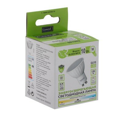 Лампа светодиодная GENERAL GLDEN, MR16, GU10, 10 Вт, 230 В, 4500 К, 630 Лм