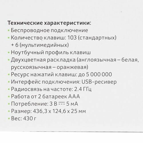 - Короткий ход клавиш; - Беспроводная; - ААА аккумуляторы (можно оперативно заменить); - Кнопки Play, громкости и Калькулятора. |