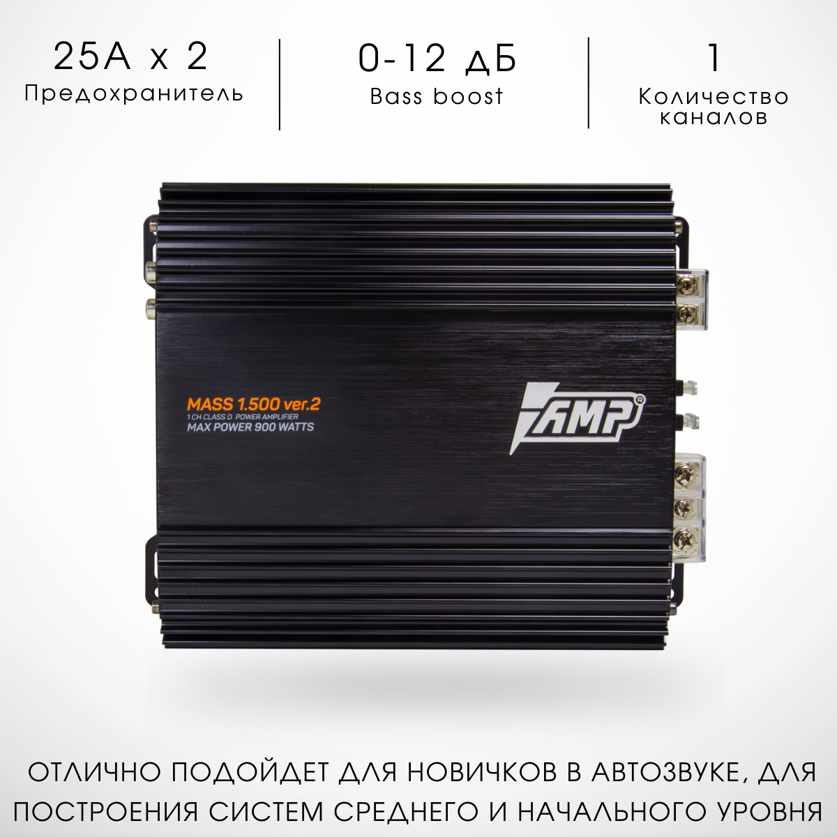 Усилитель автомобильный AMP MASS1.500 ver.2, 500 Вт х 1 (1 Ом), 900 Вт, Класс: D интересное: