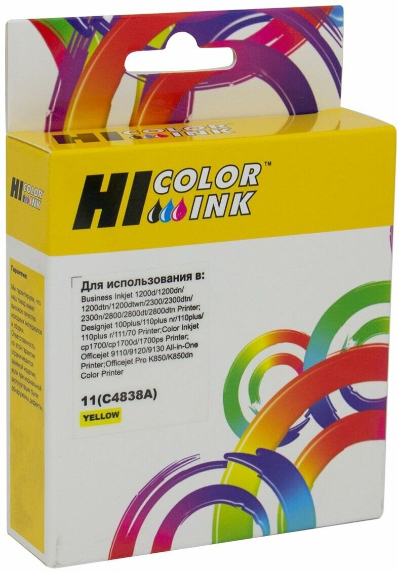 | Модель совместимого принтера | Картридж Hi-Black (HB-C4838A) для HP DJ 2000C/CN/2500C/2200/2250/500/800 / №11 / Y |
