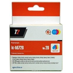 T2 Расходные материалы C8728HE Картридж IC-H8728 28 для HP Deskjet 3320 3520 3550 5650 1210 1315 Officejet 4110 6110, цветной, 180 стр.