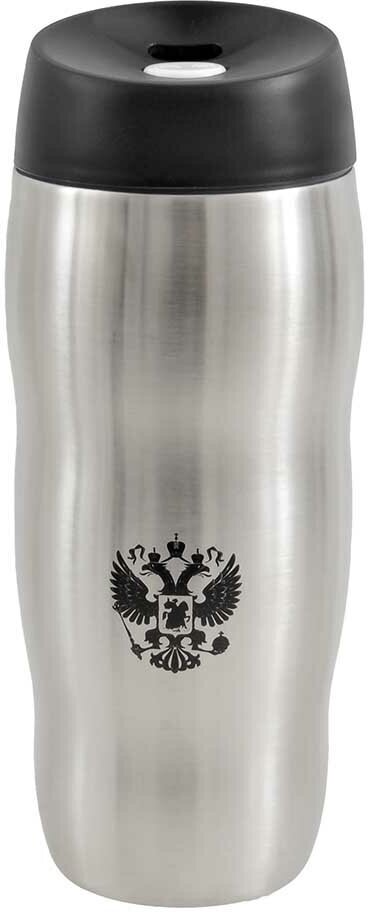 Термокружка "россия" с гербом, крышка с клапаном, 450 мл., металлик