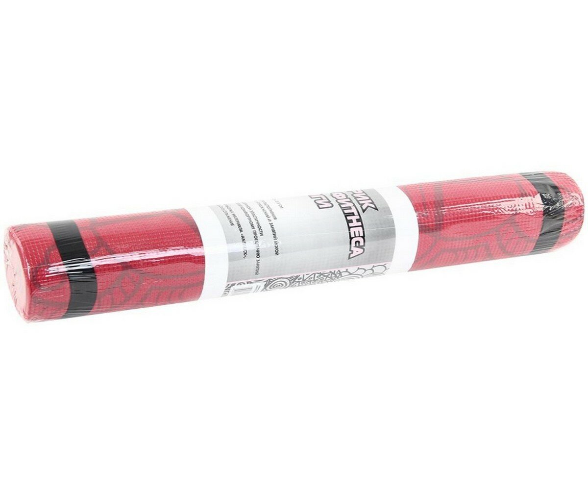 Коврик для фитнеса и йоги Larsen PVC р180х60х0,5см с принтом красный