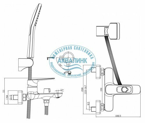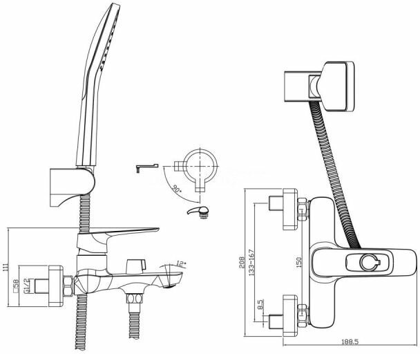 | Комплектация | Смеситель для ванны. Душевой гарнитур. Присоединительная группа (эксцентрики с отражателями) для вертикального крепления. |