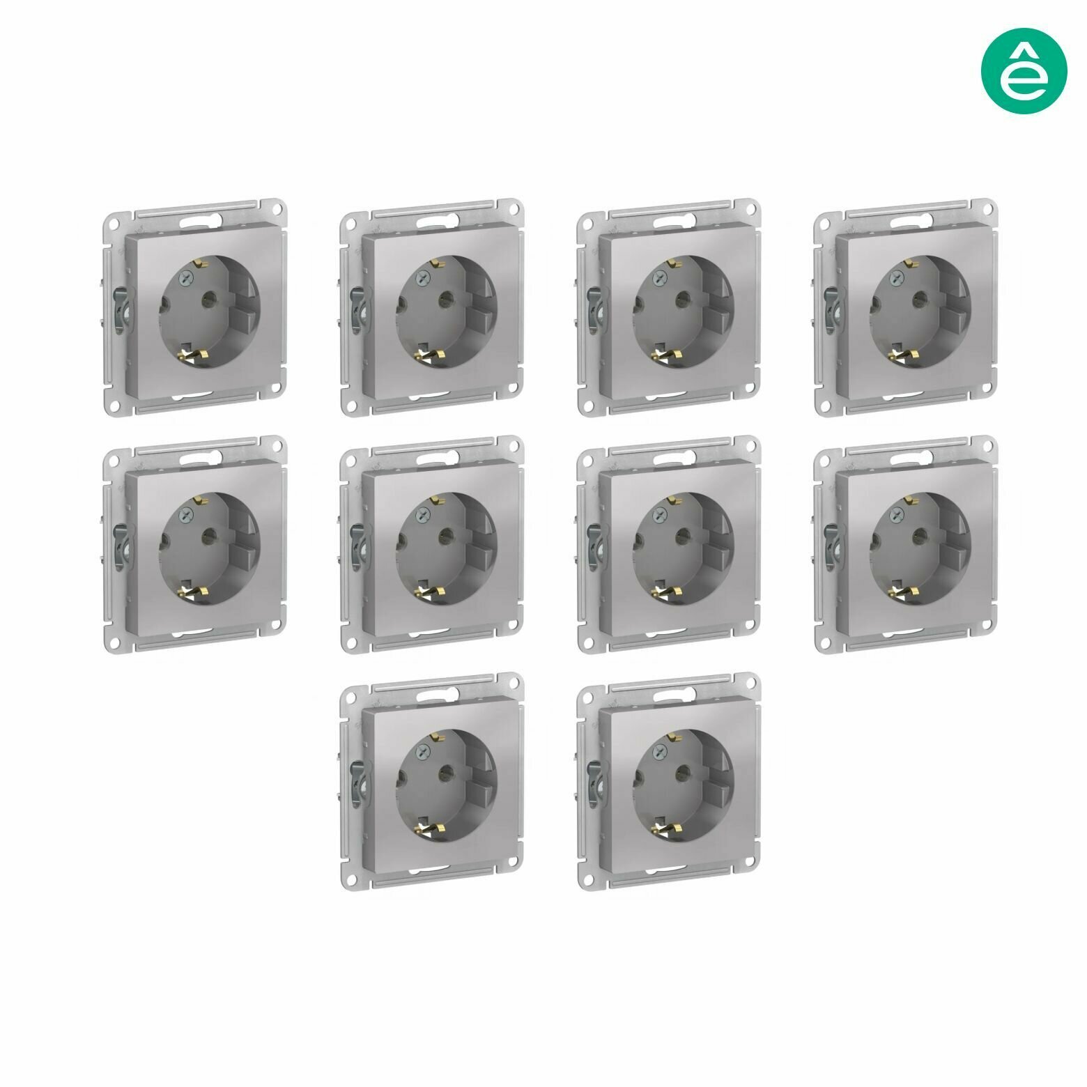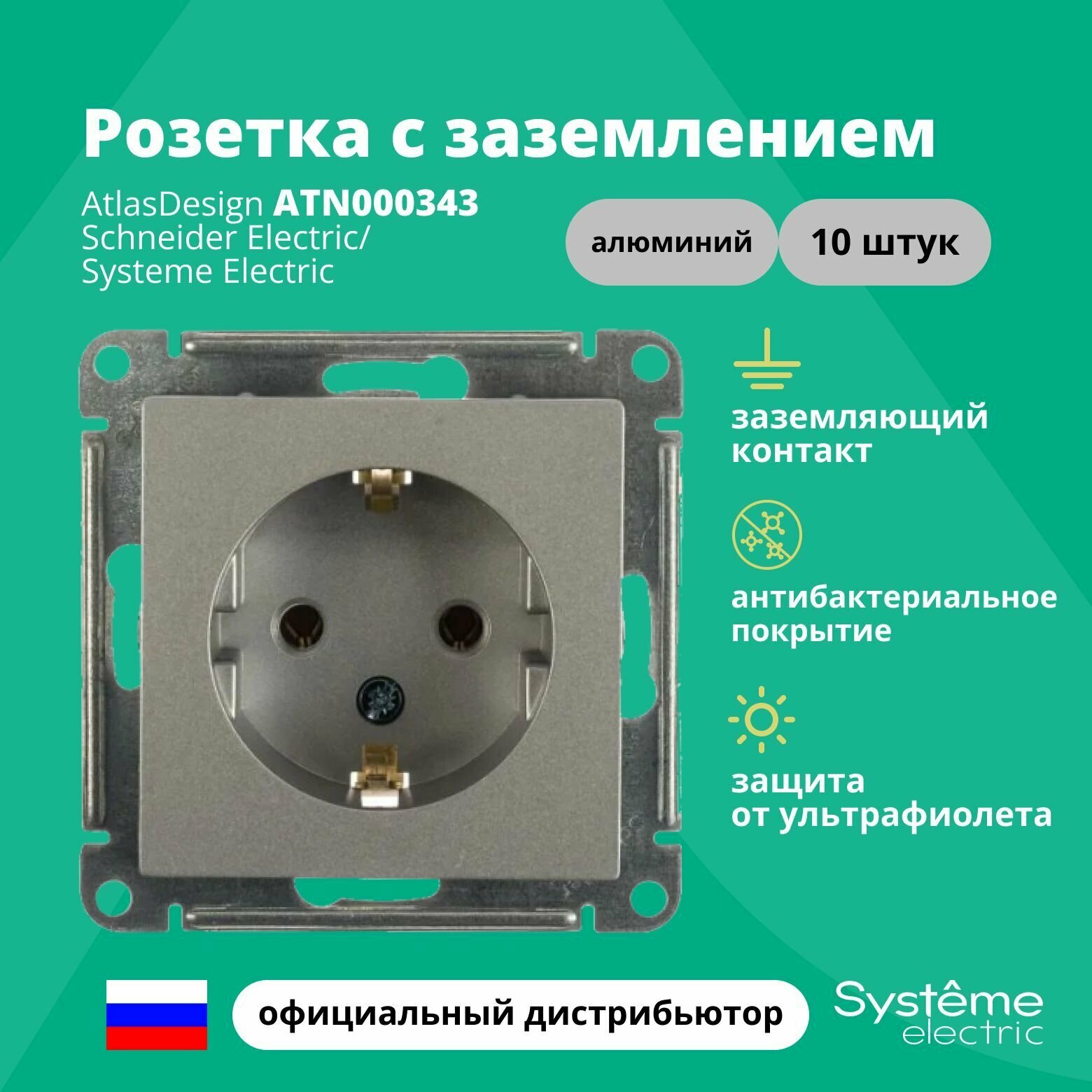 10 шт. Systeme Electric AtlasDesign Изумруд, Розетка c заземлением со шторками, 16А, механизм, ATN000845