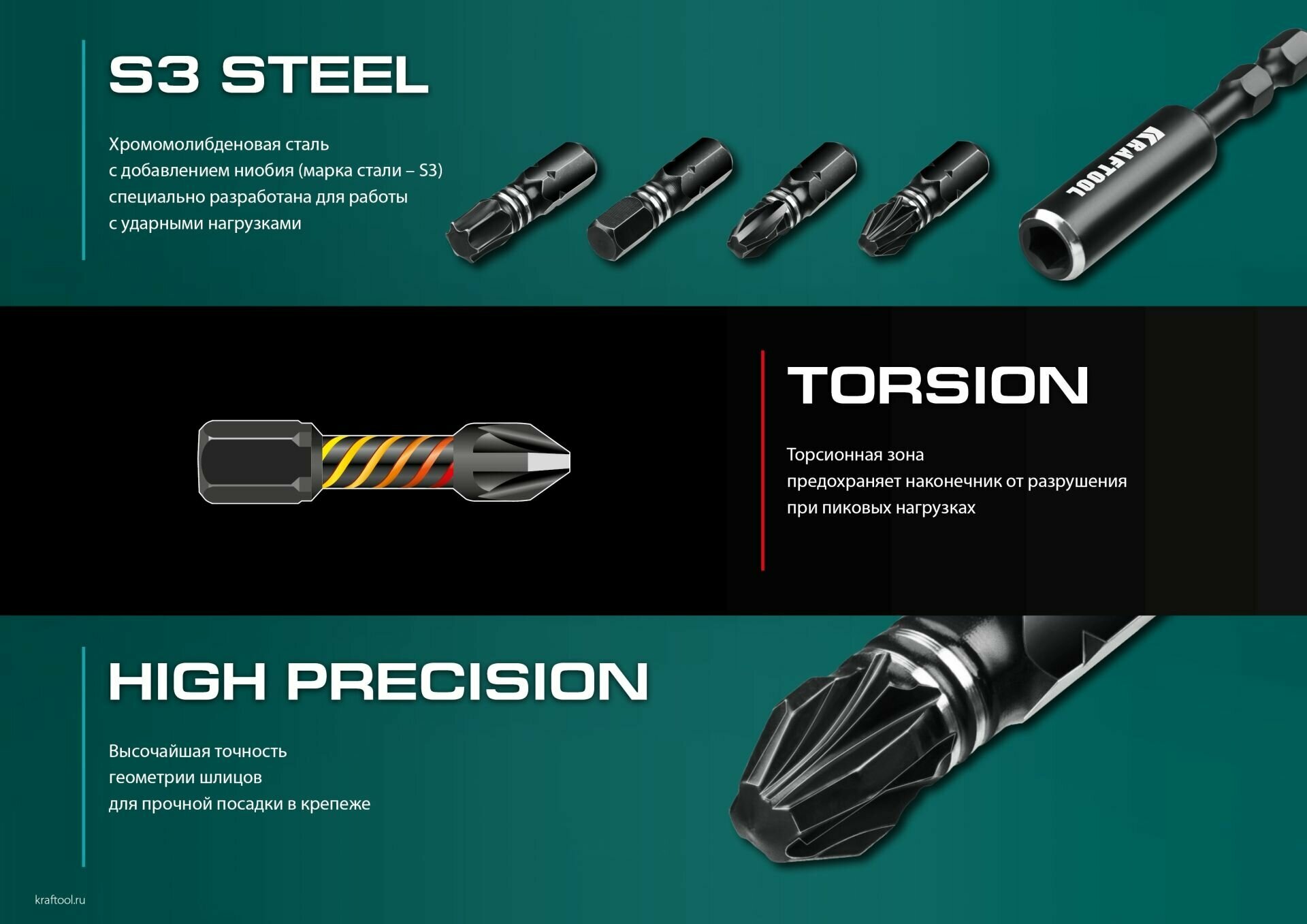Набор бит ударных торсионных Impact 32,26066-H 32, Cr-Mo-V-Nb,высокоточ.шлицы, защита от пыли и влаги для надежн хранен KRAFTOOL 26066-H32