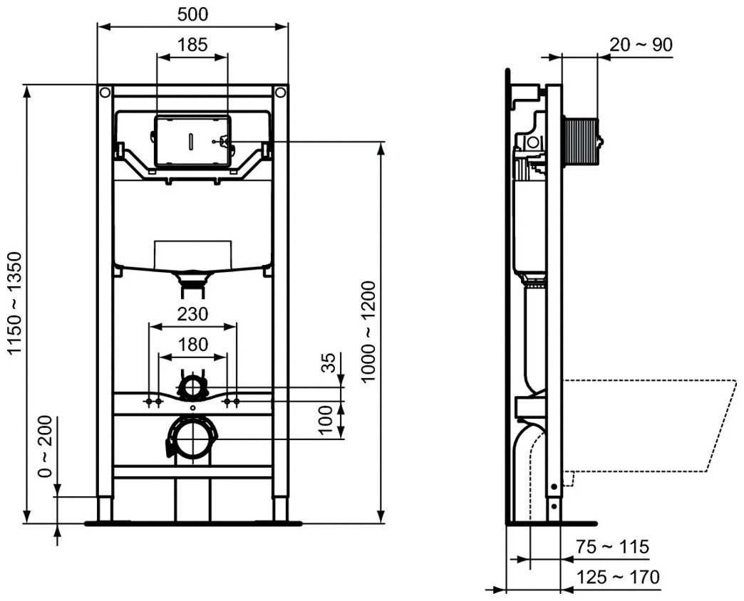 Инсталляция Ideal Standard Prosys R027767 для унитаза без клавиши смыва