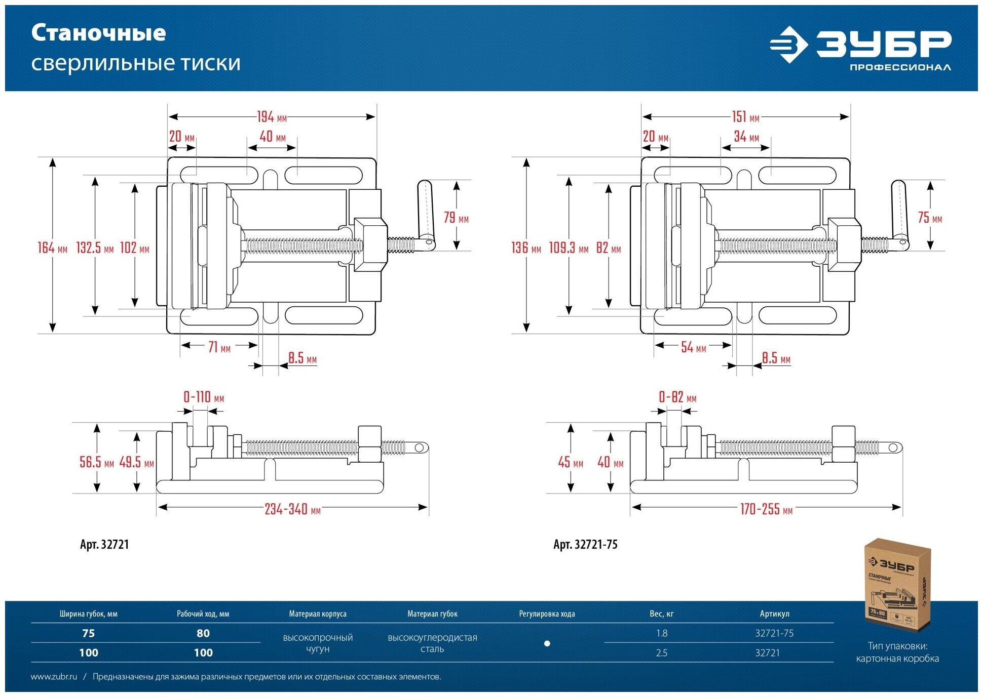 СохранитьЗУБР 75 мм, Станочные сверлильные тиски (32721-75) интересное: