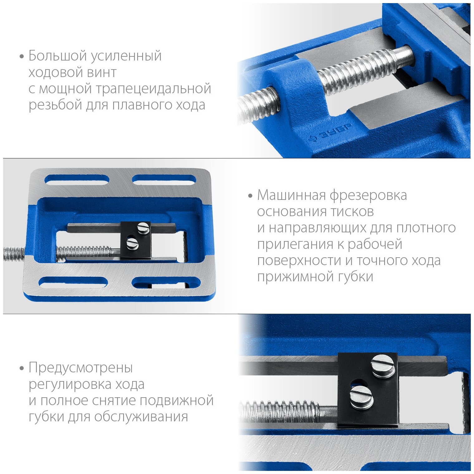 Тиски станочные ЗУБР Профессионал 100 мм трехсторонние, сверлильные [32723]