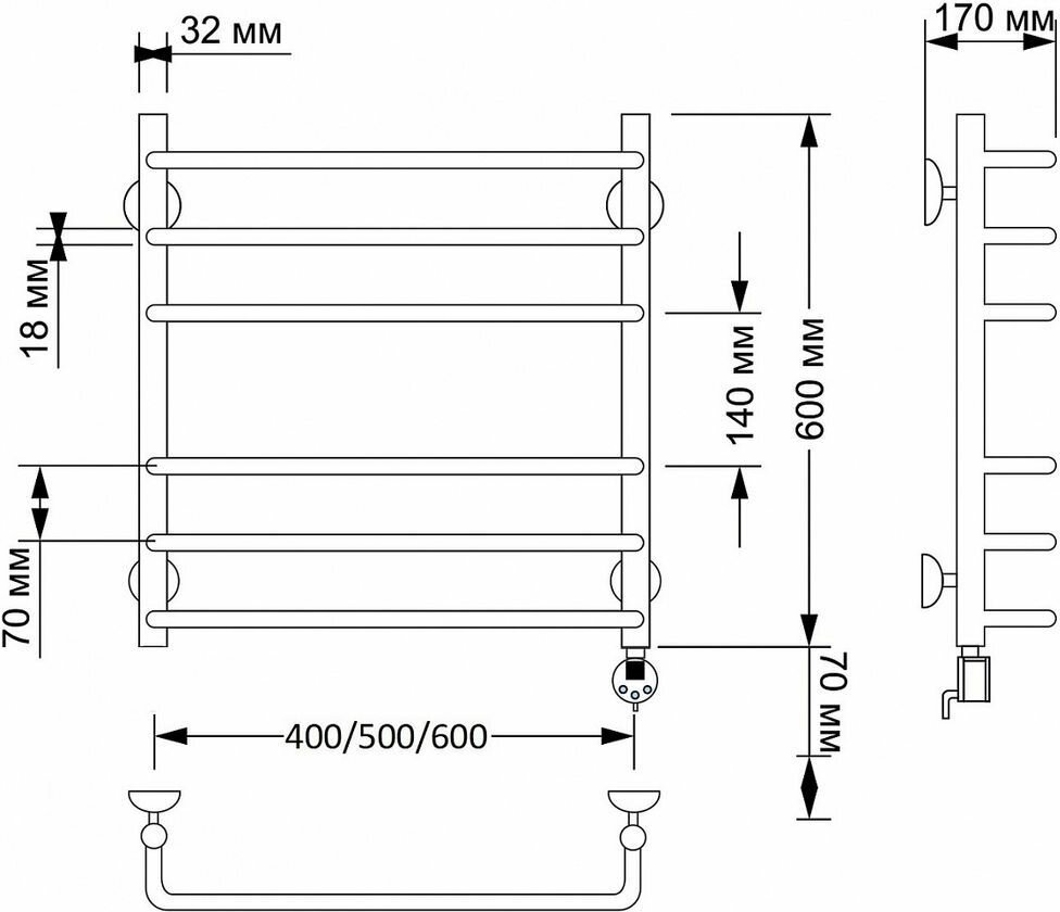 Купить полотенцесушитель электрический Secado Полотенцесушитель электрический Secado Мерида 3 50х60