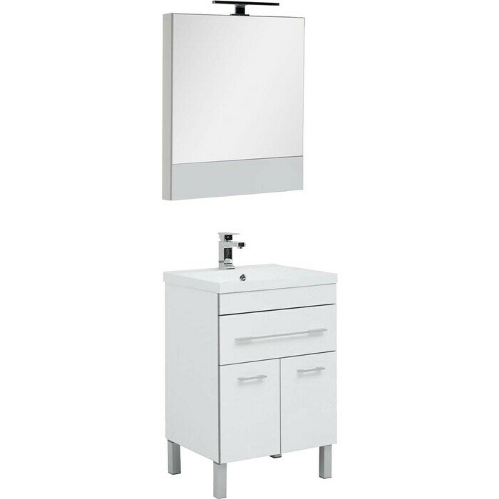 Тумба с раковиной Aquanet Верона NEW 58 белый (напольная 1 ящик 2 дверцы)