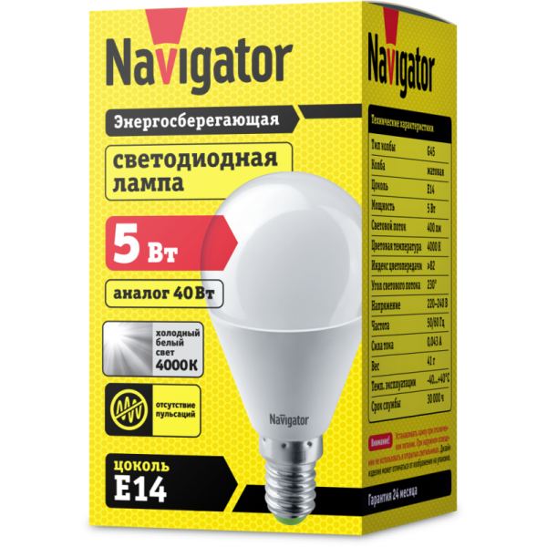 Лампа светодиодная 94 478 NLL-P-G45-5-230-4K-E14. 94478 Navigator интересное: