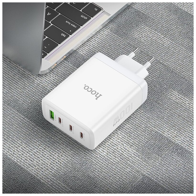 Сетевое зарядное устройство Hoco N31 USB + 3 Type-C, GAN PD 100W, QC 3.0, белый