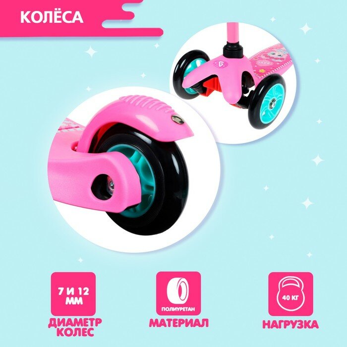 Самокат-снегокат 2 в 1 GRAFFITI "Девочка", цвет розовый, бирюзовый