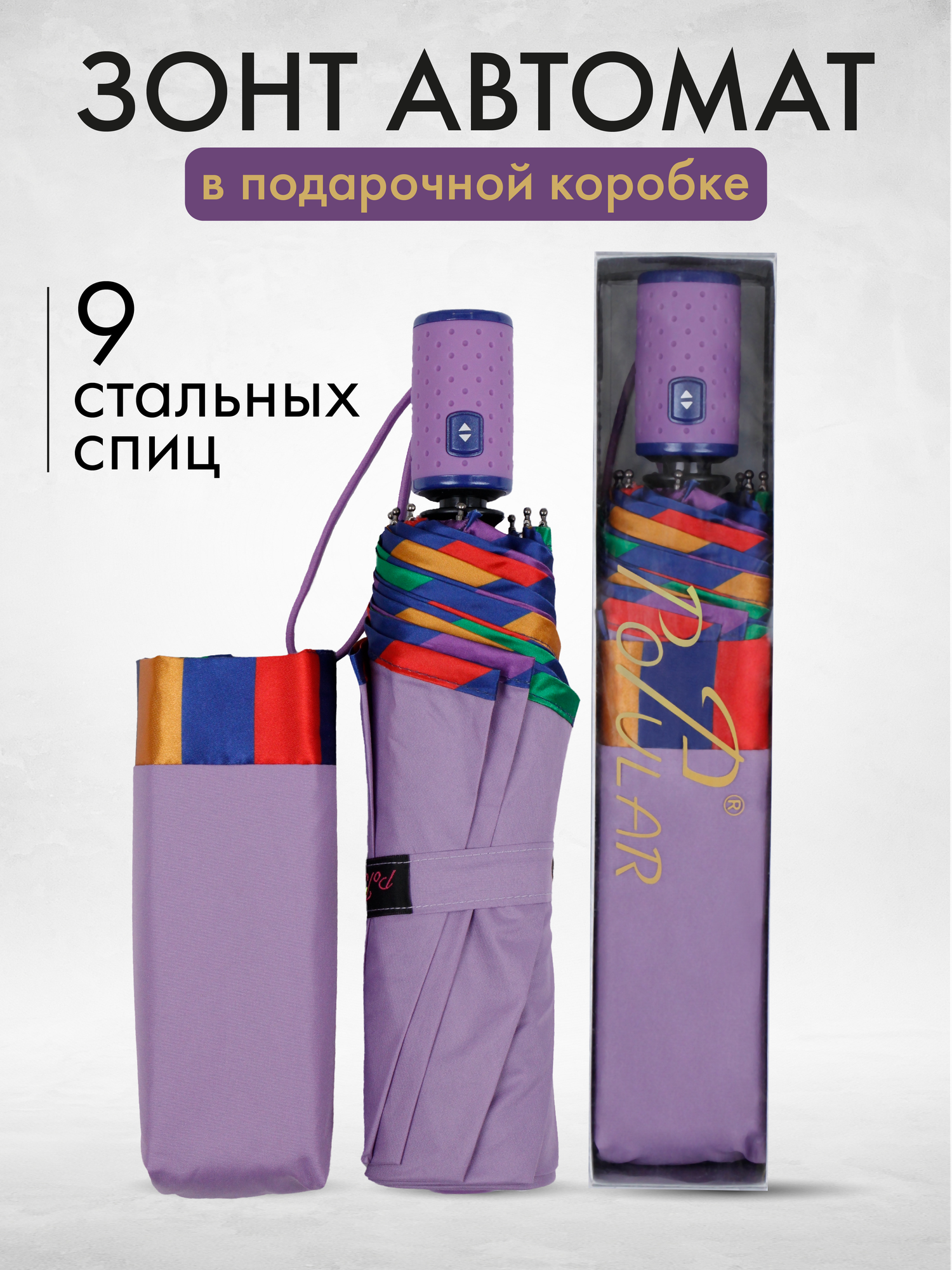 Купить Женский складной зонт Popular Umbrella автомат 2111, фиолетовый меланж