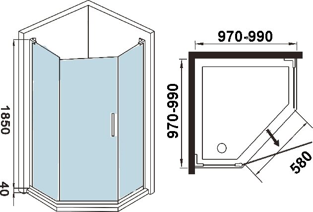 | Плюсы: | Смотрится изящно и просто. Минимальные напряги при уборке. Удачная многогранная форма экономит место. Стёкла мощные - 6 мм. Поддон удобный. |