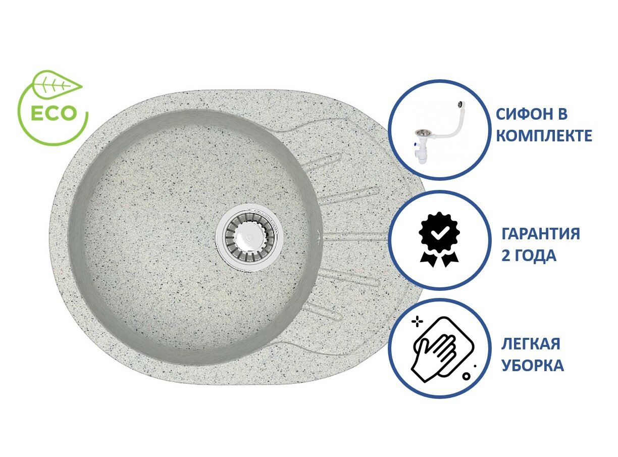 Мойка Раковина для кухни из искусственного камня матовая ТМ Карельский камень (MARRBAXX) Модель 10-G31 Цвет белый