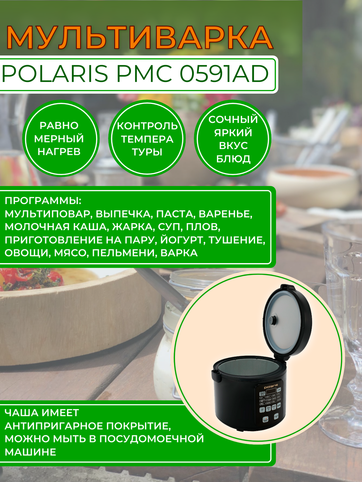 Мультиварка Polaris PMC-0591AD Черный интересное:
