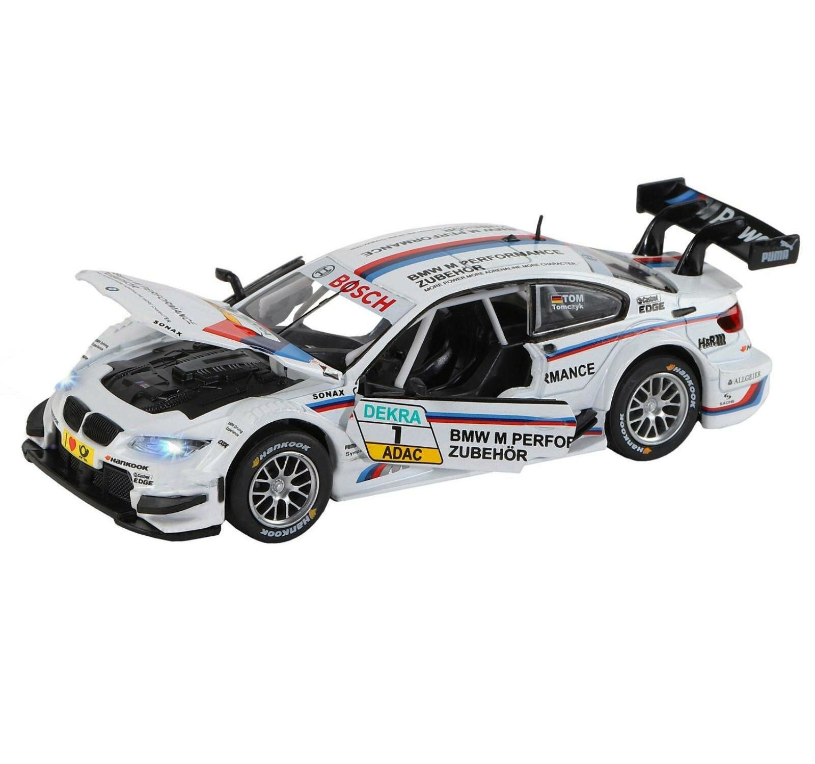 Купить Машина металлическая BMW M3 DTM 1:32, инерция, световые и звуковые эффекты, открываются двери, цвет белый