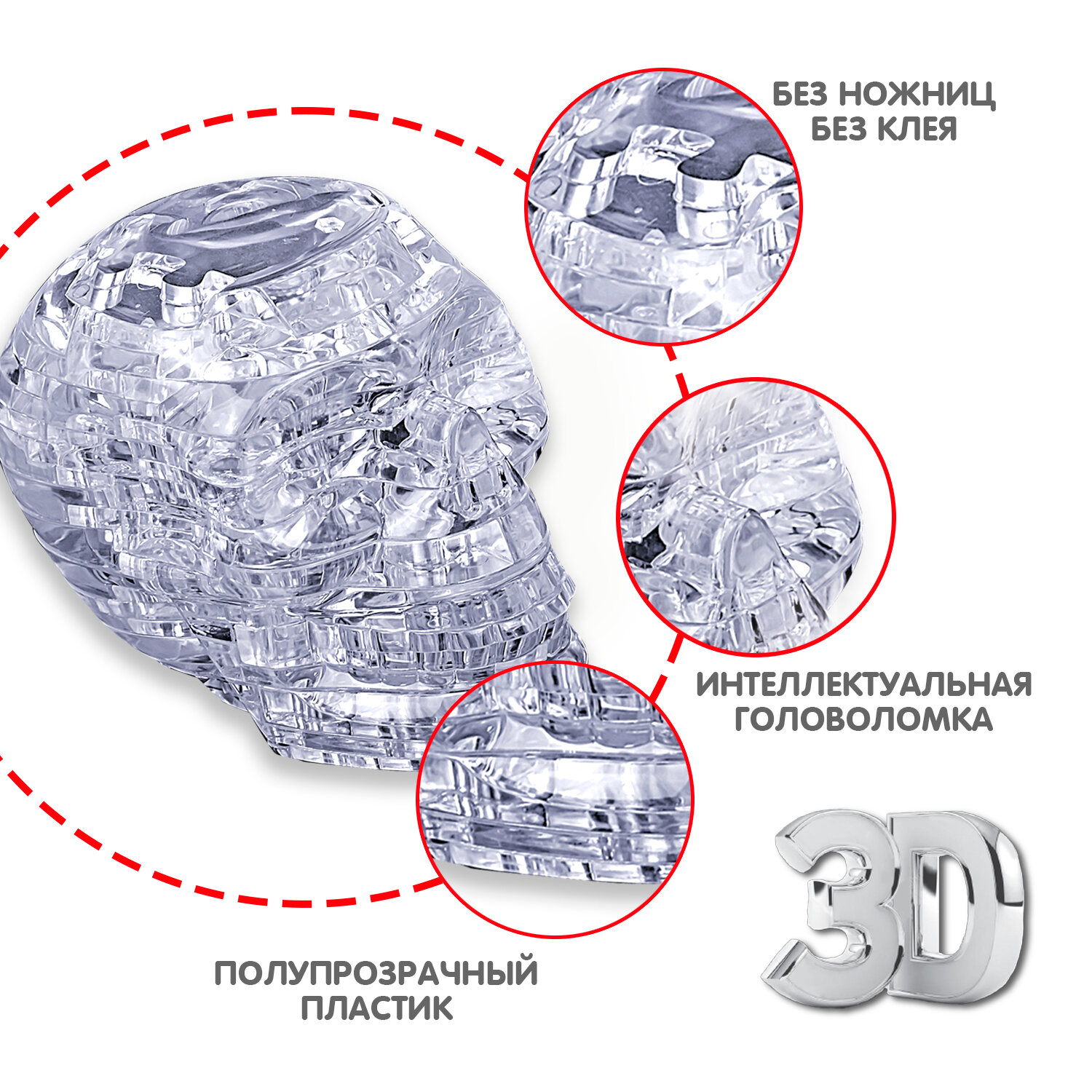 Пазл 3D Bondibon Магия Кристаллов "череп", 49 деталей, прозрачный (ВВ5230) интересное: