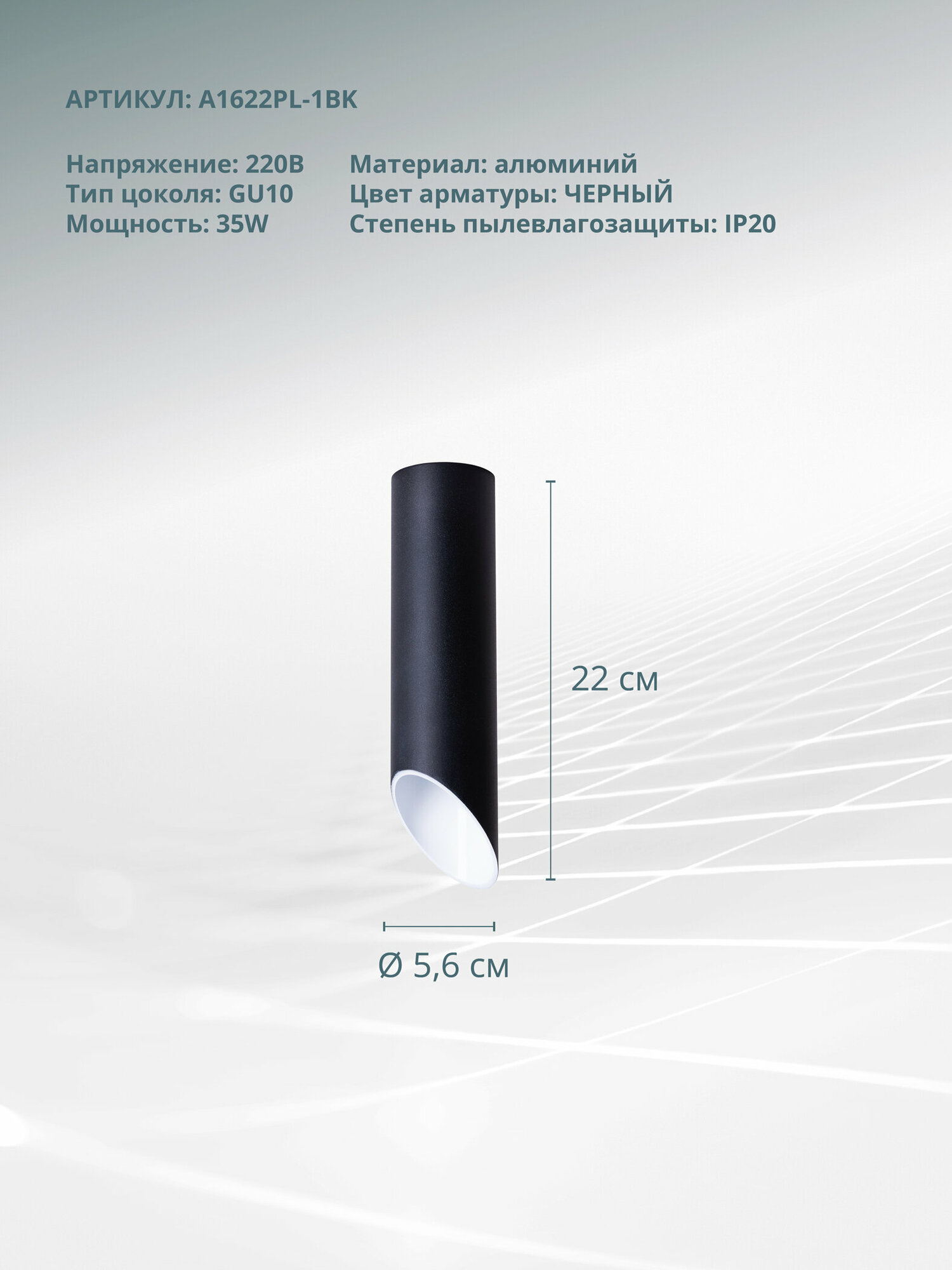 Накладной светильник Arte Lamp Pilon A1622PL-1BK, Черный, GU10