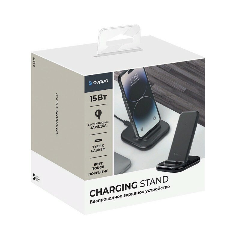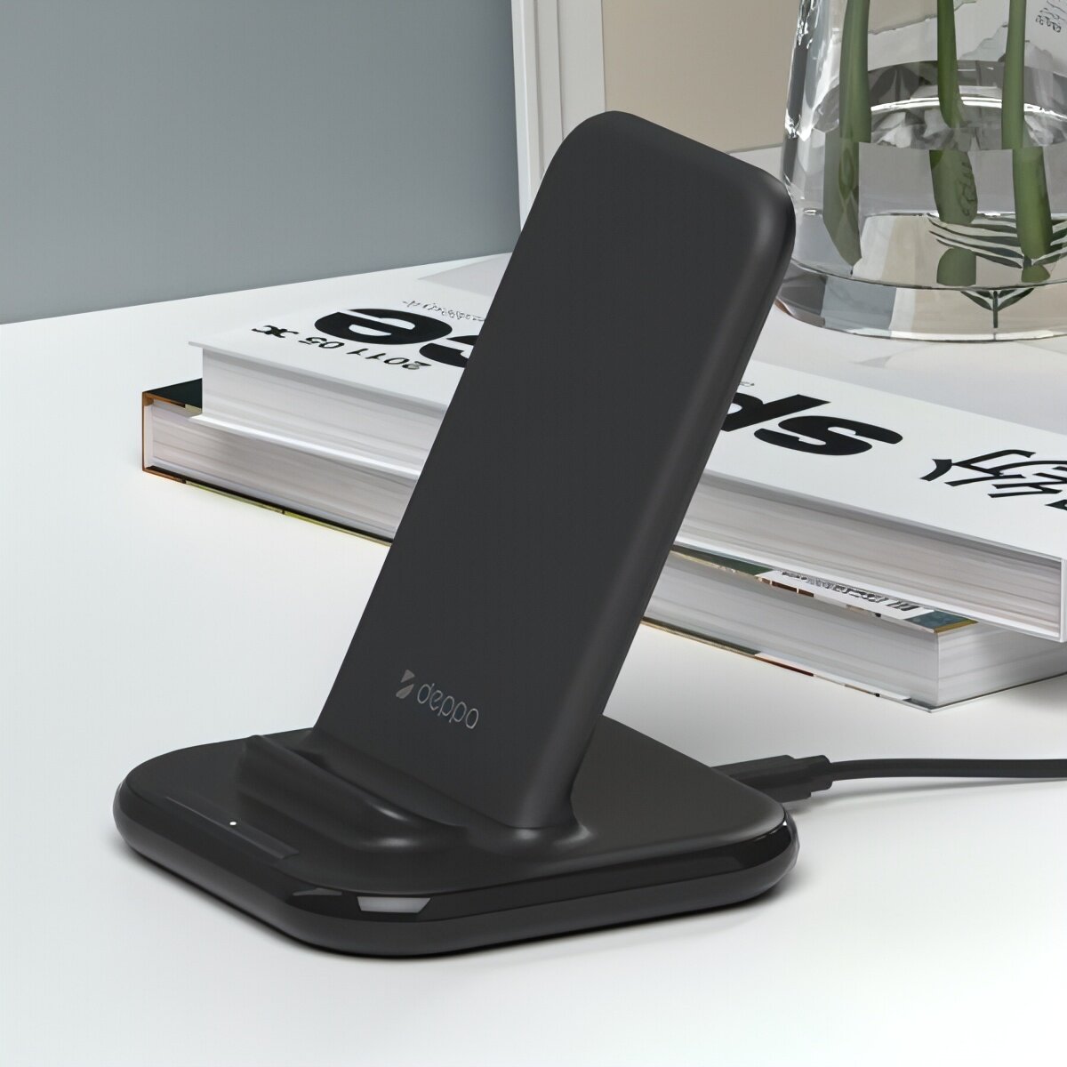 Купить Беспроводная зарядка 15Вт QI Fast Charge черный Deppa/быстрый заряд и подставка под телефон в любом положении/для iPhone айфон /для самсунг