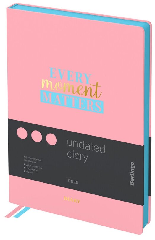 Ежедневник недатированный Berlingo А5, 160 листов, Haze, голубой срез, розовый, с рисунком