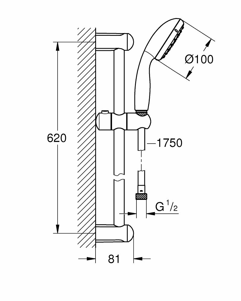 | Дополнительная информация | высота стойки для душа: 600 мм; диаметр душевой лейки: 100 мм |