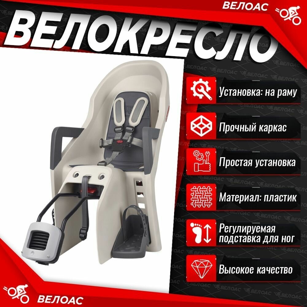 Велокресло детское заднее Polisport Guppy rs plus ff крепеж на подседельную трубу cream/grey интересное: