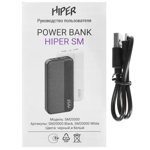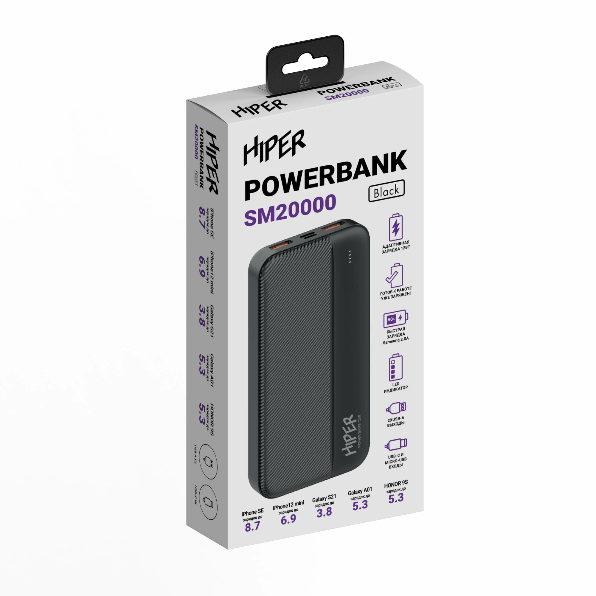 Внешний аккумулятор (Power Bank) HIPER SM20000, 20000мAч, черный [sm20000 black]