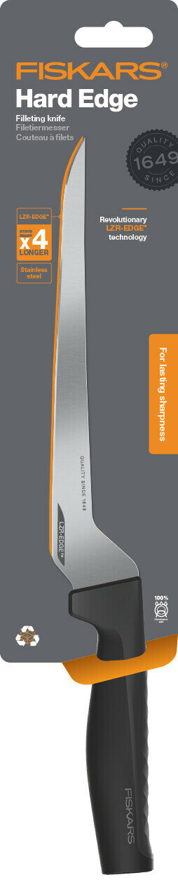 Нож кухонный Fiskars Hard Edge, филейный, для рыбы, 217мм, заточка прямая, стальной, черный [1054946]