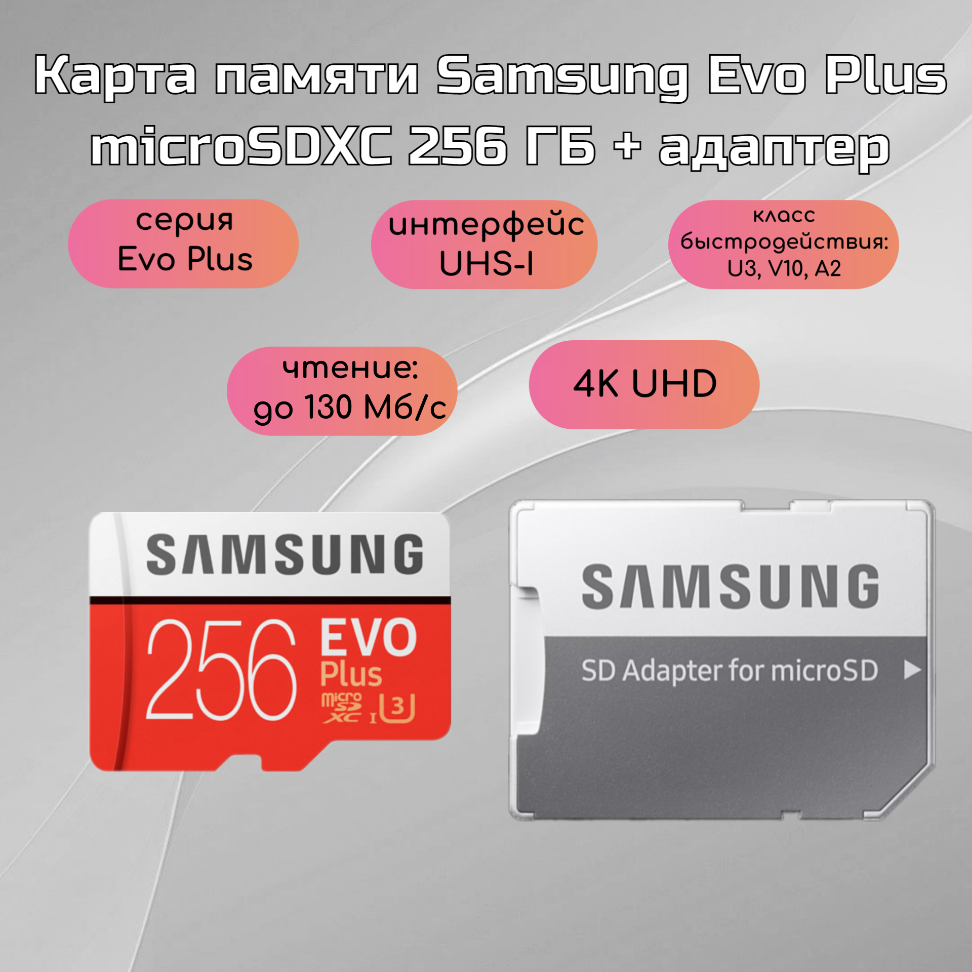 Купить Samsung Карта памяти Samsung EVO Plus 256GB MicroSDXC Class 10/UHS-I/U3/130Мб/с MB-MC256KA/RU