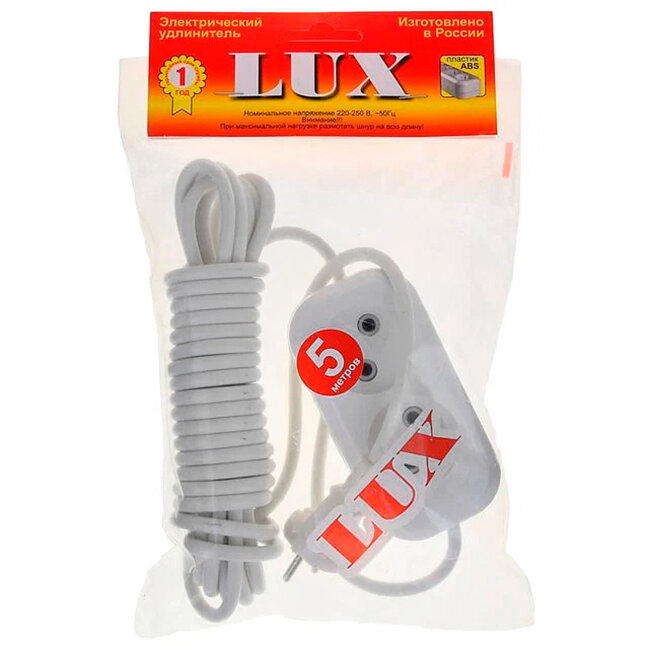 Удлинитель LUX У2-О-05 2-местный б/заз, 250В 10А, 5м, 1600152