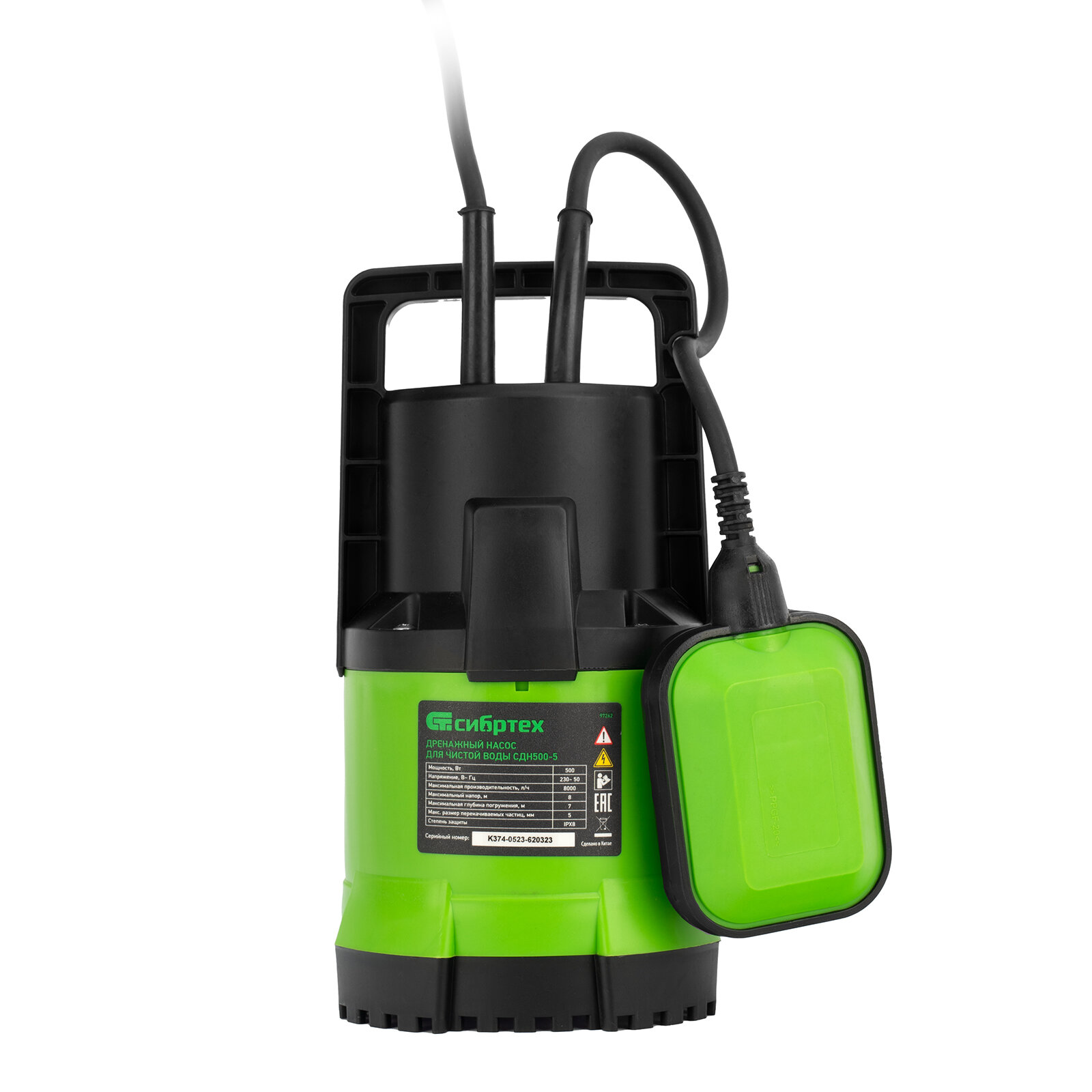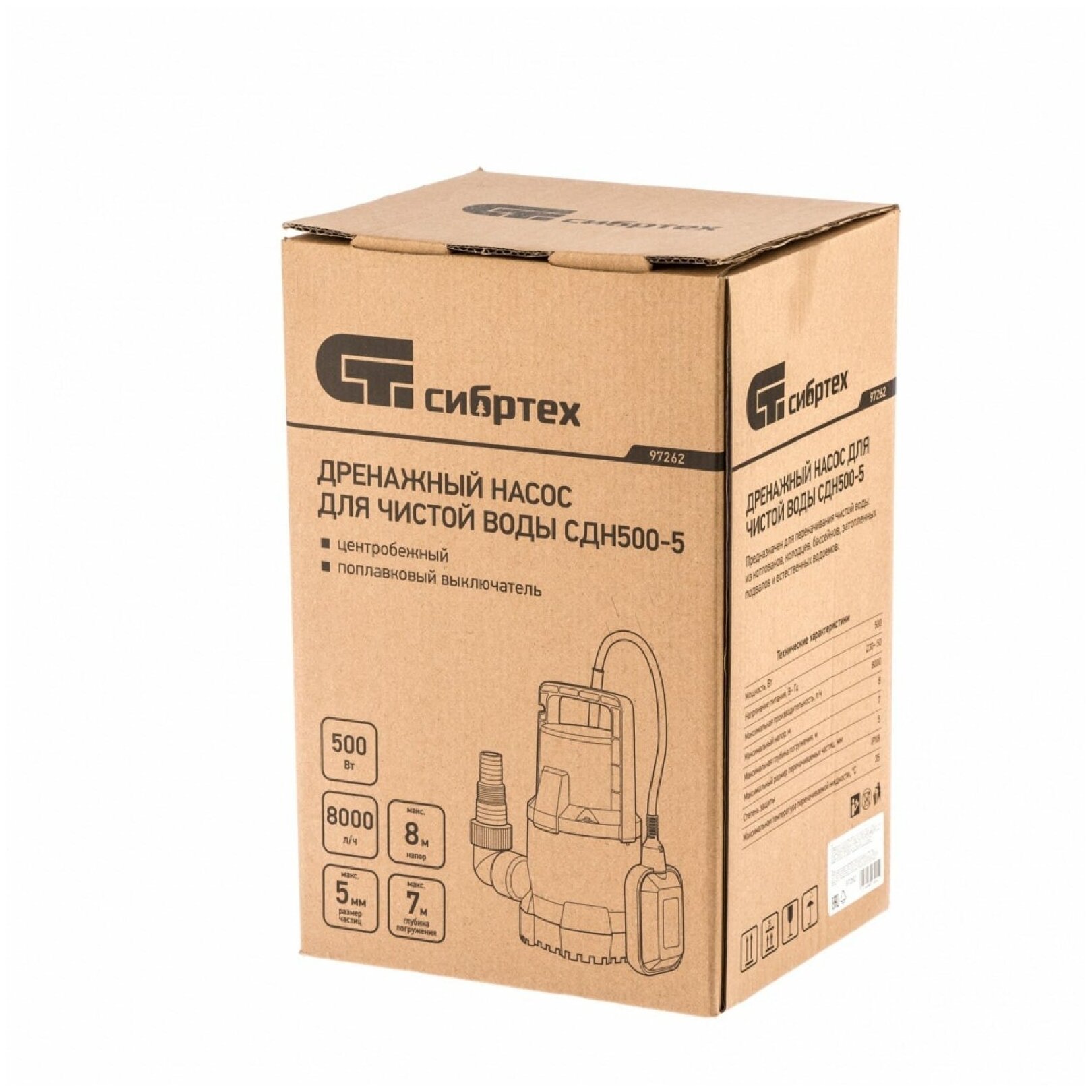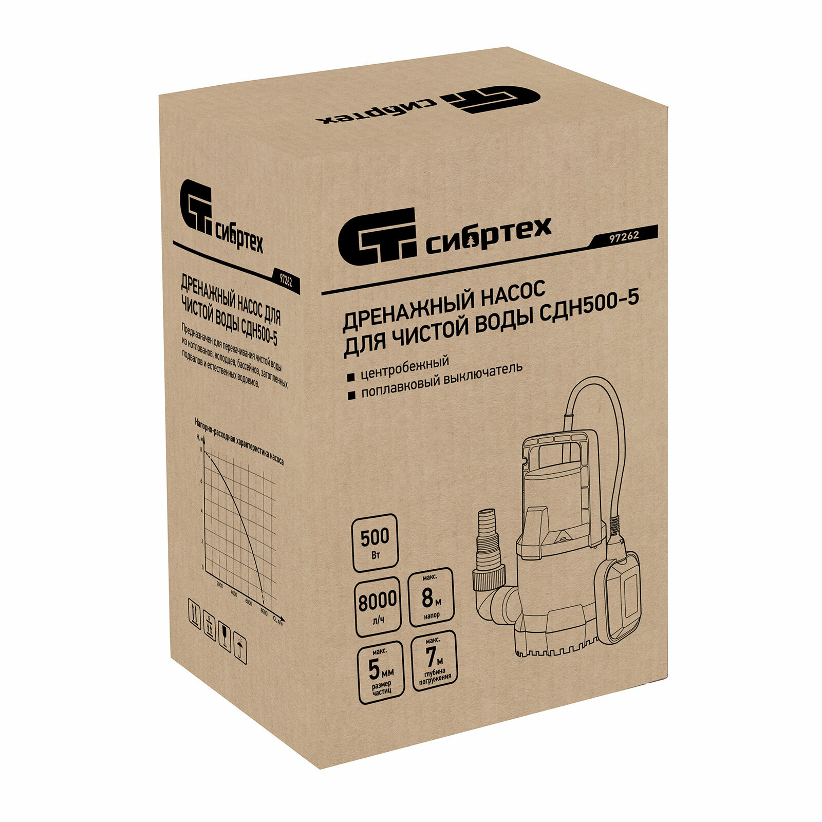 Дренажный насос для чистой воды СДН500-5, 500 Вт, напор 8 м, 8000 л/ч Сибртех Сибртех