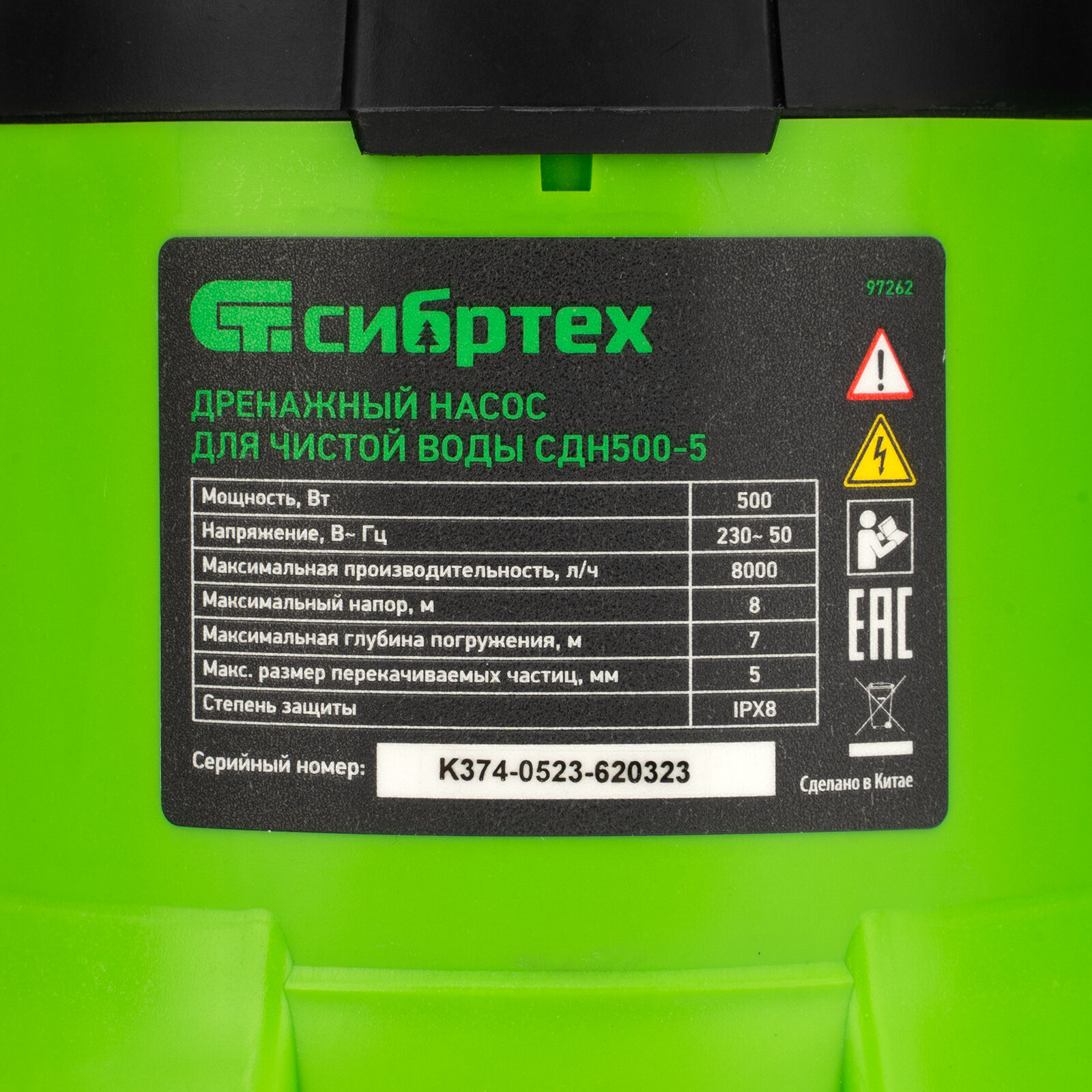 Насос дренажный СИБРТЕХ для чистой воды СДН500-5, 97262