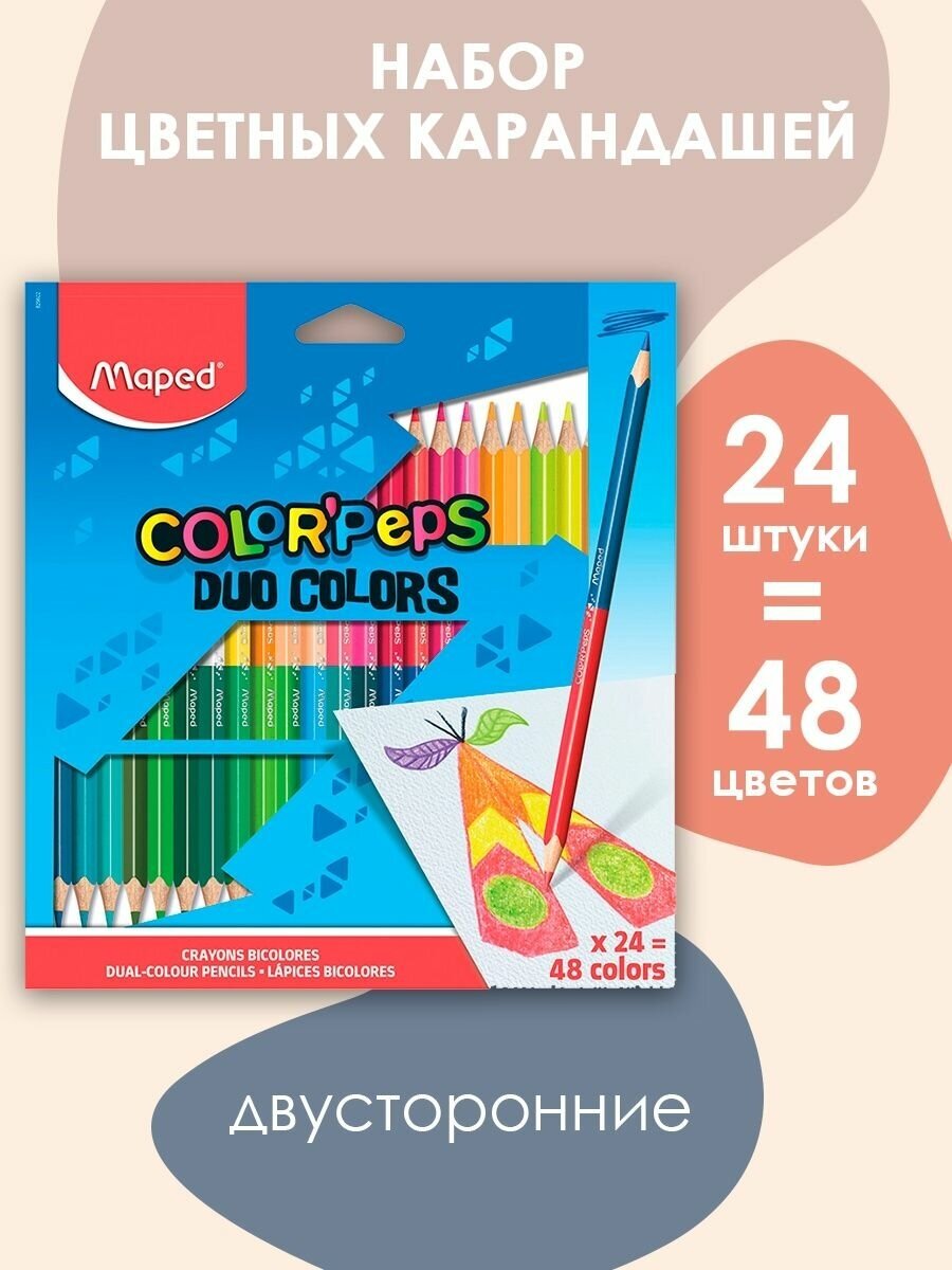 Карандаши двусторонние MAPED (Франция) "Color'Peps Duo", 24 штуки, 48 цветов, трехгранные, 829602