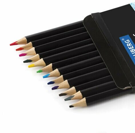 Карандаши цветные BRAUBERG «Artist line», 12 цветов, трехгранные, черный корпус, высшее качество, 180596. 180596