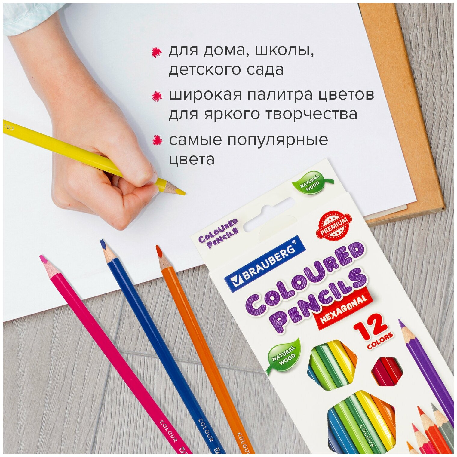 Квант продажи 2 ед. Карандаши цветные BRAUBERG PREMIUM, 12 цветов, шестигранные, грифель мягкий 3,3 мм, 181656