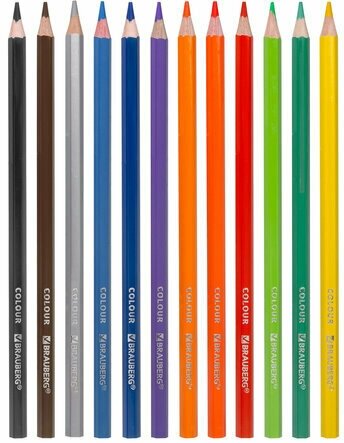 Карандаши деревянные цветные для рисования Brauberg Premium, 12 цветов, шестигранные, грифель мягкий 3,3 мм, 181656
